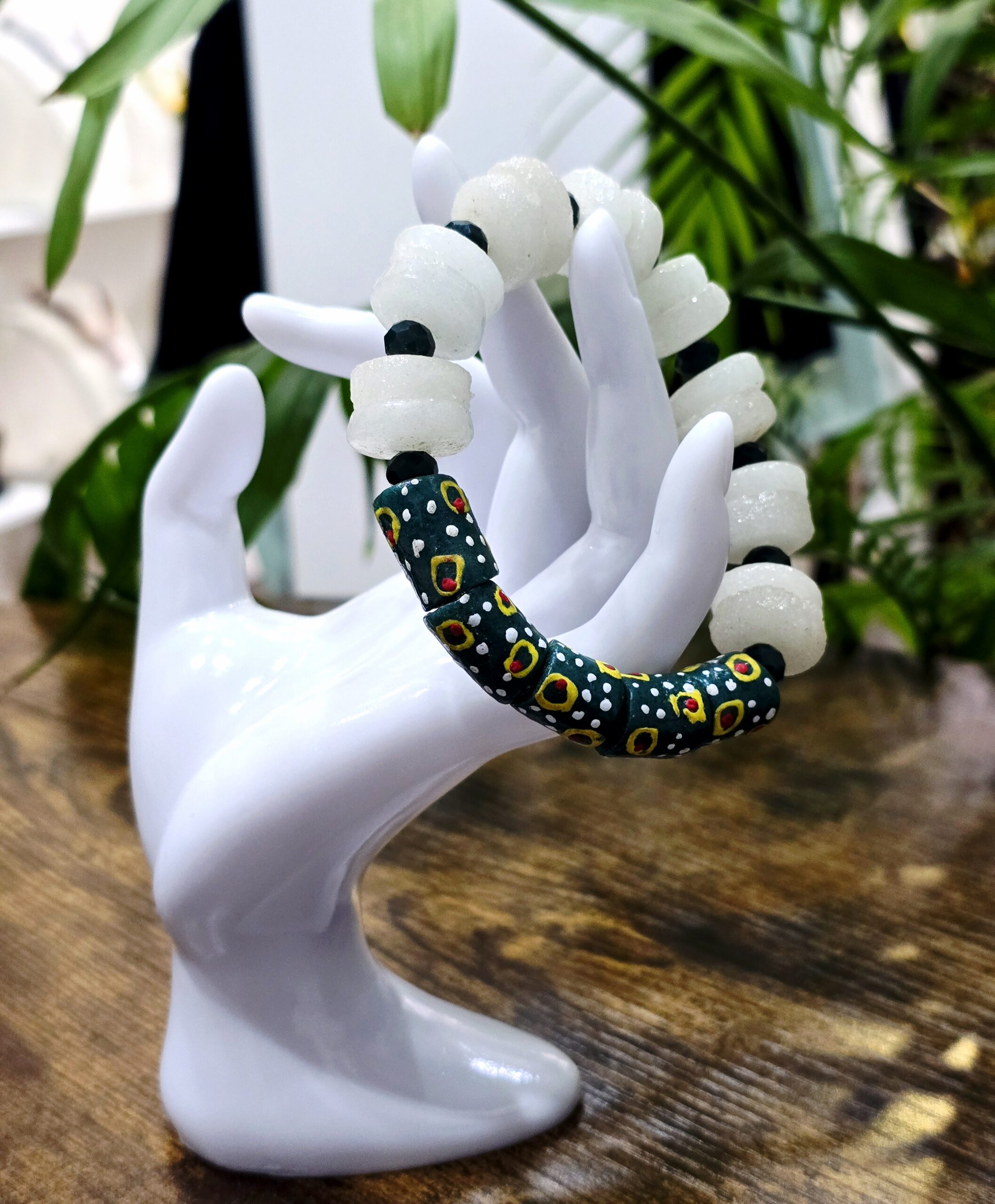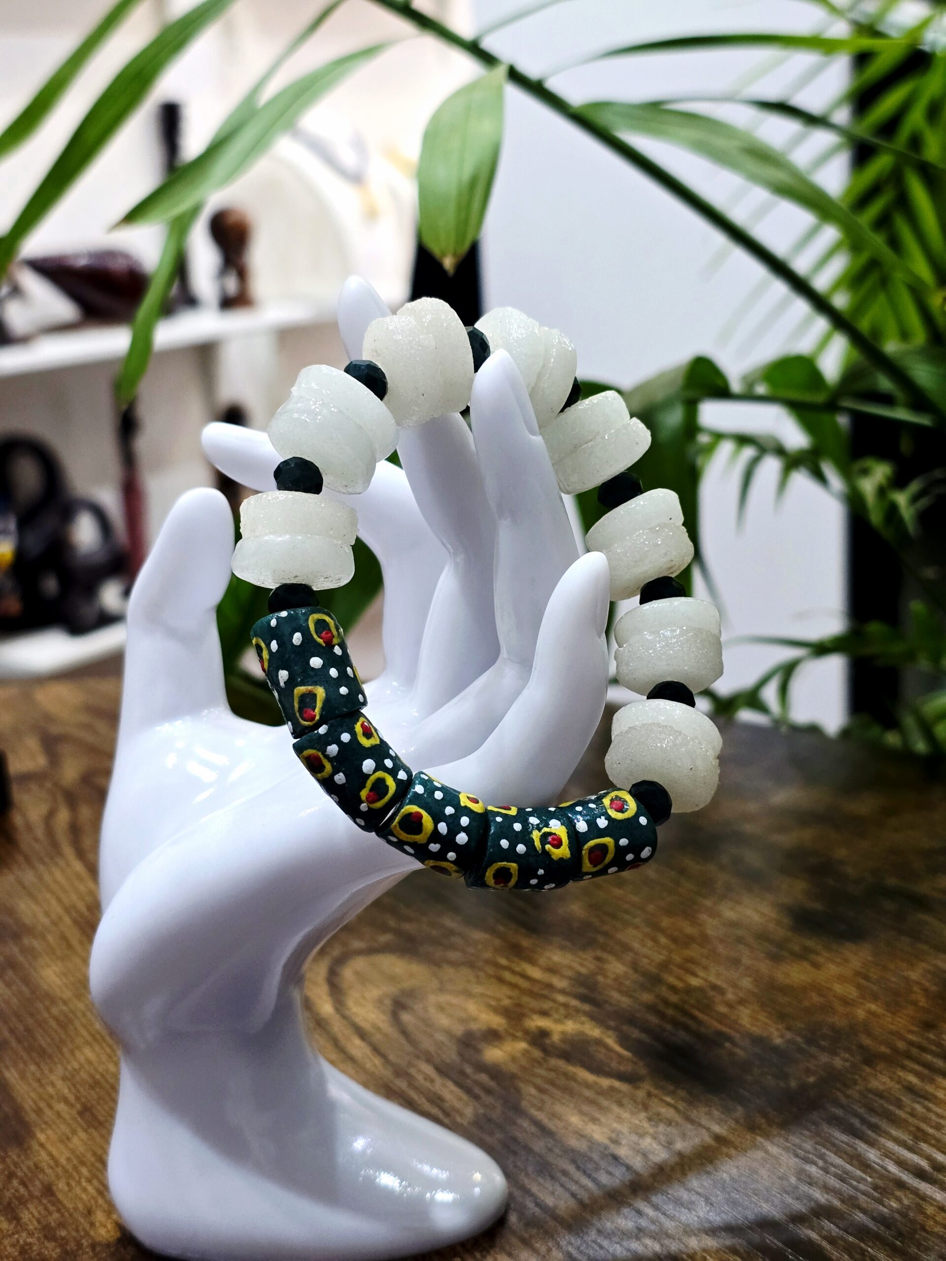 Expandable elasticated bracelet, made with recycled glass krobo beads.